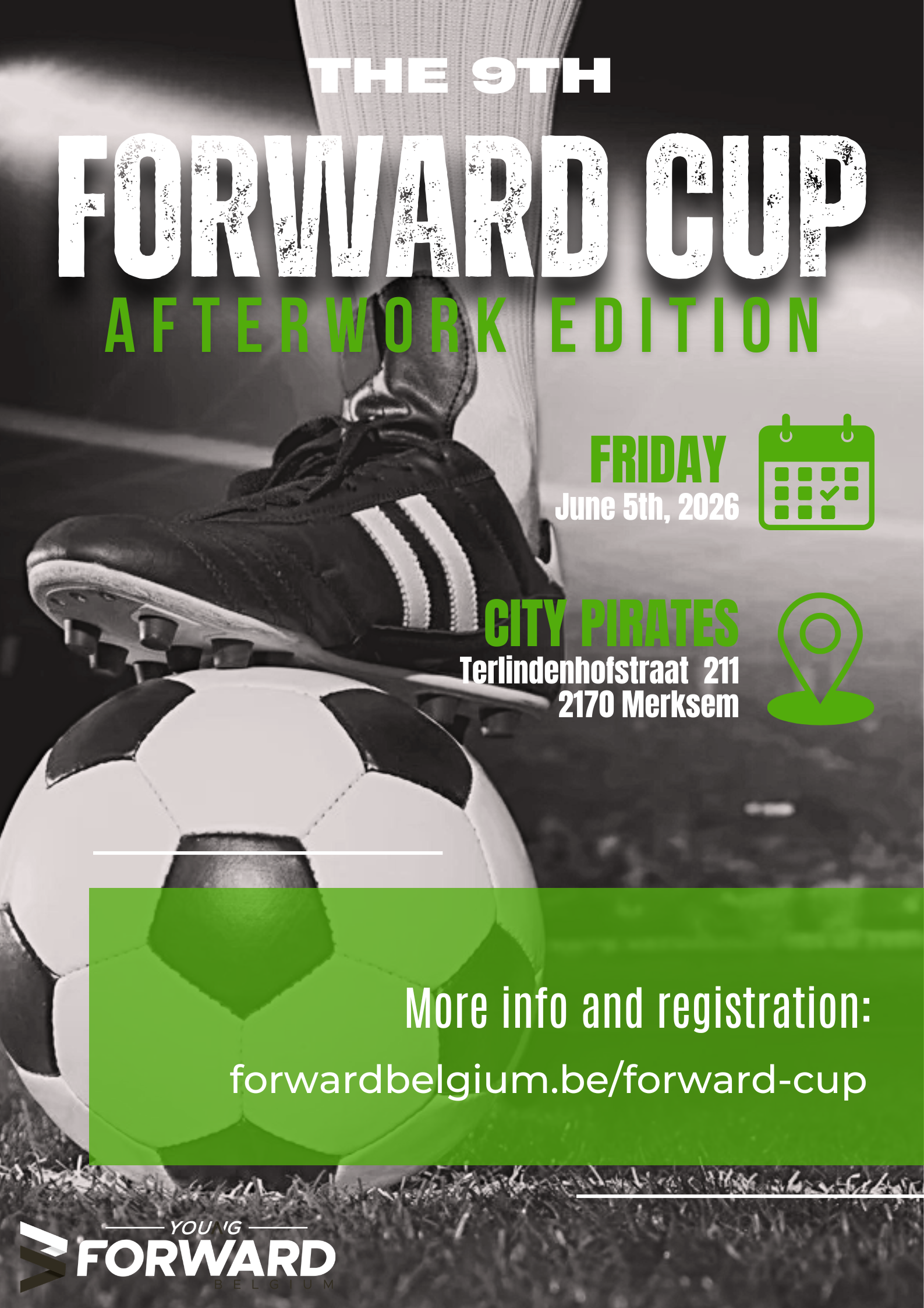 Op vrijdag 5 juni 2026 organiseert Young FORWARD Belgium de 9de FORWARD Cup. Het Jef Mermansstadion van City Pirates in Merksem vormt opnieuw het decor voor dit spannende minivoetbaltoernooi waar de gehele logistieke gemeenschap samenkomt.